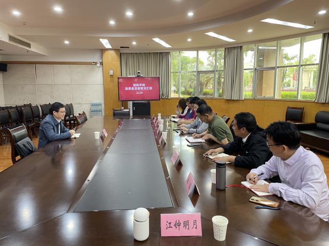 对学院下一步的工作,谢花林提出了五点要求,一是要在教学模式上创新,以科教融合为抓手,开设部分高阶性课程,鼓励学生积极参与教师课题,帮助学生锻炼科研思维、了解科研方法,使学生海外升学申请更有亮点。二是要加强校企合作,积极引导学生到企业实习实训、让学生了解企业实际需求,为就业打好坚实的基础。三是要打造校校融合模式,实现师资共享,为海外师资聘请打开新思路。四是要对学生进行分级分类培养和指导,做好学生海内外升学以及职业规划。五是要积极开展校友资源的挖掘,努力拓展海外办学资源,开拓国际化交流合作项目,为学校国际化事业添砖加瓦。