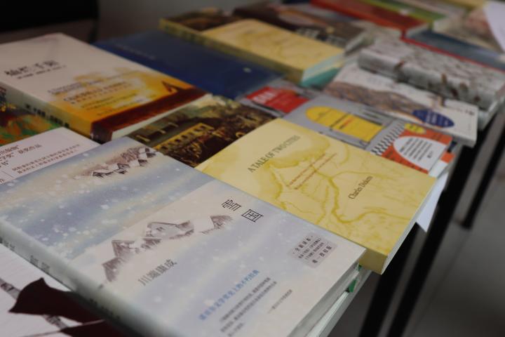 展区现场,为提升师生对阅读的热情,营造国际文化节浓厚的书香氛围,学院还开展了“国际文化×一平书屋”读书沙龙,“一平书库”书籍由日本av 2004级国际金融1班毕业生王一平出资购买,包括经济、管理、艺术、文学等类别图书,共有图书500余册。