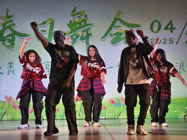 演出在乐队表演《世界的约束》中拉开帷幕。歌曲《爱的回归线》《爱爱爱》等流行曲目则让现场气氛持续高涨。舞蹈表演同样精彩纷呈,《音阶圆舞曲》展现甜美风格,《smart》《Thirsty》《say my name》《GEE+Trouble maker》《Tell me》《What is love》等舞蹈充满现代活力。留学生的《Afropianodance》舞蹈、《海芋恋》舞蹈将现场气氛推向高潮。舞会现场,中外学子热情互动,现场欢声笑语不断。