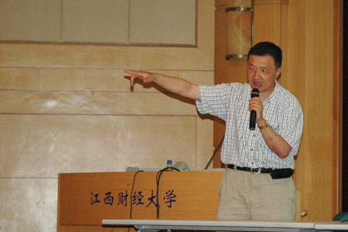2005年6月4日上午和下午,美国瓦布莱索大学工商管理学院金振琥博士在我校学术报告厅分别做题为“美联储如何对美国经济进行调控影响”和“美国证券市场分析”的两场讲座。 金振琥教授在两场